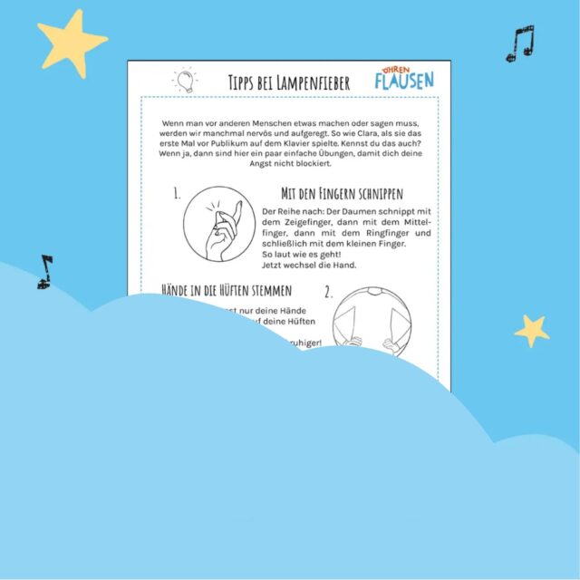 Auch das Thema Lampenfieber wird kindgerecht aufgegriffen. Die kurzen Übungen helfen dabei, Nervosität abzubauen und geben Kindern Strategien an die Hand, um sich vor einem Auftritt zu sammeln und zu stärken.
